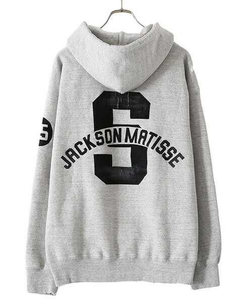 【デザイン】 ・ARKnetsのエクスクルーシブライン「ONLY ARK」として別注した今作はJackson Matisse (ジャクソンマティス) の卓越した技術を元に作成された逸品「 25 Parka 」 【ONLY ARK(別注)ポイント】 まず目を惹くのはボディ ヴィンテージ市場では滅多に見る事の出来ず、市場価格でも時価10万円以上はするヴィンテージアイテムをJackson Matisseならではの技術で忠実に再現。 非常に高い加工技術はまるでヴィンテージさながらの仕上がりで、精通している人をも唸らせるほどの造り ・フードは40年代以前に見られる後付けフードタイプ ・ネックリブが施されたスウェットシャツに後からフードだけを別に取り付けています ・この後付け手法は手間とコストが掛かり、現在主流となっているフード一体型のパーカの登場で、市場からほとんど姿を消しています 続いて目を見張るのはプリント ・フロッキープリントの後に、ボディ同様に加工を施している為、ボディとの相性も抜群 ・左腕にはARKnets 25周年を意味したのナンバリングプリント ・バックプリントのSはARKnetsにてJackson Matisseを取り扱う店舗の一つである、ARK STANDARDの意味を込めています ・更にJackson Matisseのアーチロゴを配したスペシャルな仕上がりになっています