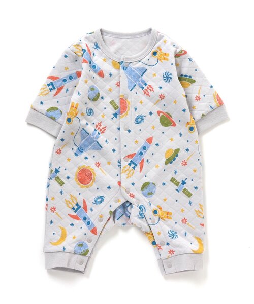Ampersand(アンパサンド)のカバーオール・ロンパース「ニットキルト前開き総柄カバーオール(宇宙柄)」は、手頃な価格とおしゃれなデザインが人気!出産祝いにもどうぞ!