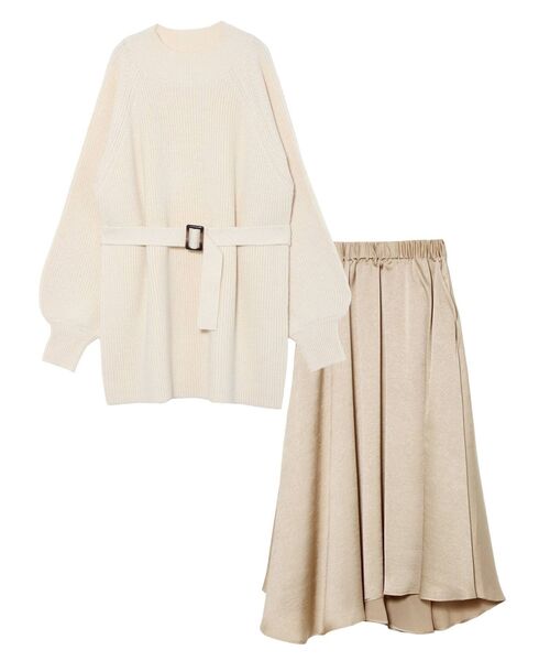 ■デザインポイント ざっくりとした糸感が特徴のチュニック丈のニットと柔らかくニュアンスのある表情のサテンを使用したイレヘムスカートのセットアイテム。 表情の違う見え方のイレヘムスカートが、軽やかな印象です。 ウエストマークのできるニットベルトがスタイルアップのできるアイテムです。 ■スタイリングポイント ・セパレートデザインなので上下別々に着用してもOK ・イレヘムデザインがこなれた印象なのでSETUP1着で着ても感度高めな仕上がりに --------------------------------------------------- 透け感:なし(ニット若干あり) 裏地:スカートあり 生地の厚さ:普通 洗濯:× 伸縮性:ウエストゴム仕様 ポケット:あり ジップ:なし --------------------------------------------------【 ZOZOTOWNでお買い物を楽しむ便利機能 】♡商品のお気に入り登録完売カラーの再入荷時、ラスト1点の時、セール開始時にお知らせします。予約アイテムが入荷して通常販売になった時もお知らせしてくれます!その他お得な通知も盛りだくさんです。♡ブランドのお気に入り登録新商品や再入荷、セール情報など、いち早くブランドのお得な情報を受け取ることができます。ぜひご活用ください!