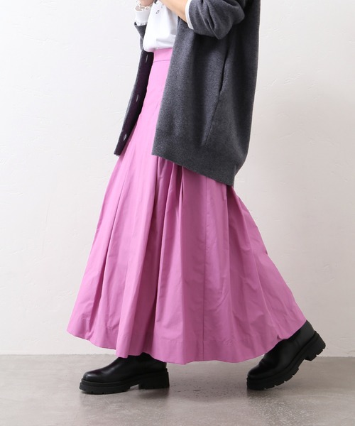 【2021AW】 JOURNAL STANDARD シーズンレスに使いやすいシックな印象のスカート。 腰回りはタックですっきりとして、ヒップの上から程よく広がる形です。 前はすっきりと見せつつ、後はゴム仕様になっているので着心地も◎ 使いやすいブラックと秋冬コーデに映えるピンクの2色展開です。 ※取り扱いについては、商品についている品質表示でご確認ください。 洗濯:手洗い可