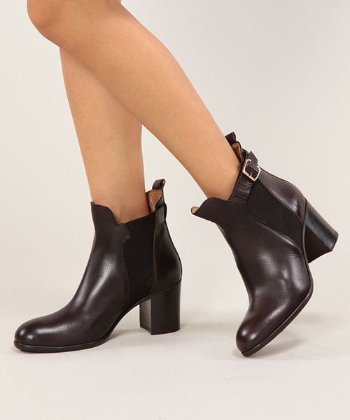 ●サイドゴアブーツ● ベルト使いがアクセントになった、サイドゴアのショートブーツ。上質なシープレザーを使用しています。ほど良く高さのあるヒールがグッドバランスを作り、安定感のある太さでスタイルを引き締めます。出番の多い1足になりそうです。