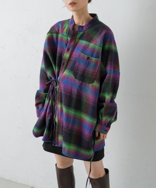 起毛素材の暖かみのあるチェックシャツの登場■デザイン鮮やかなネオンチェックが目を惹くアレンジシャツ。暗くなりがちな秋冬のコーディネートに華やかさをプラス。センターの紐は取り外し可能なのでサイドの紐とアレンジして頂けます。素材違い品番はこちらネオンチェックアレンジシャツ KAZ1012204A0001■コーディネートスタンドカラーなので首元まで暖かく一枚でも、ハイネックの重ね着も◎ベーシックなボトムスでシンプルにまとめたコーディネートがおすすめ。オーバーサイズなのでデニムやスラックスパンツ、タイトやマーメイドスカートと相性抜群です。■素材・洗濯表示素材:コットン100%洗濯:洗濯機のおしゃれ着/手洗いコースで洗濯可能タンブル乾燥:不可アイロン:150℃まで※撮影画像はサンプル品を使用しているため、実際の商品と仕様、加工、サイズが若干異なる場合がございます。また、可能な限り実物に近いカラーにて掲載していますが、使用しているパソコンのモニター設定や、携帯電話のメーカー・機種により実際のカラーと異なって見える場合がございます。予めご了承ください。▼商品のお気に入り登録ハートマークをクリックし、お好きなカラーを選んでお気に入りに登録完売カラーの再入荷通知や、ラスト1点の通知、セールの通知も受け取ることができます。▼ブランドのお気に入り登録新商品や再入荷等、いち早くブランドのお得な情報を受け取ることができます。<返品・キャンセルについて>・着用・洗濯後の返品・ご交換は致しかねます。・商品到着後、着用前に商品を確認して頂きますようお願い致します。※生産時期により色・素材・サイズ感など多少異なる場合がございます。※掲載画像の商品の色味は、屋外や屋内の光の照射や角度により実物と色味が異なる場合がございます。また表示のサイズ感と実物は若干異なる場合もございますので、予めご了承ください。