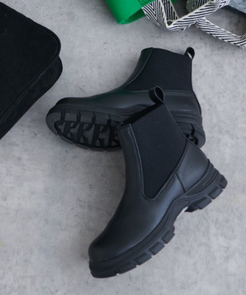 存在感のあるシルエットが旬なチェルシーブーツ。 足元にボリュームのある、バランスのいいコーディネートに仕上げてくれる。 デイリーなカジュアルスタイルにはもちろん、フェミニンスタイルの外しアイテムとしても。 大胆に切り替えられたアイキャッチなサイドゴアは、着脱しやすいのもうれしいポイント。