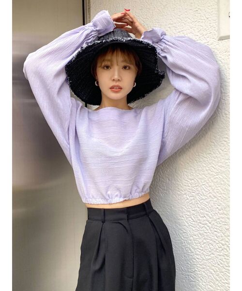 ■たっぷりとした袖がキュートなショートトップ■ドルマンスリーブでたっぷりとした袖が特徴のクロップドアイテムです。袖口もギャザーパフで女性らしいシルエットになります。程よく立体的な生地はデザイン性がありスタイリングのポイントになります。袖にボリュームがありますが、ウエスト周りを絞る事によってどなたでもバランス良く着こなして頂けます。ショート丈なのでEMODA定番のハイウエストデニムとの相性抜群です。※画像の商品はサンプルです。実際の商品と色味、仕様、加工、サイズ、素材等が若干異なる場合がございます。----------------透け感:ややあり生地の厚さ:薄手裏地:なし伸縮性:なし----------------【トクする便利機能】♡商品のお気に入り登録再入荷時、ラスト1点の時、セール開始時にお知らせします。♡ブランドのお気に入り登録新商品や再入荷、セール情報など、ブランドのお得な情報を受け取ることができます。是非ご活用ください!
