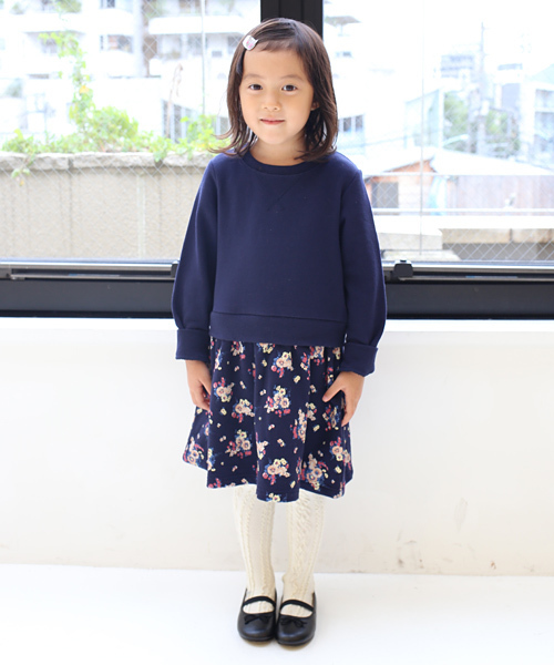 ウラケ素材でお作りしたワンピース。 トップはシンプルなソリッド、スカート部分はフラワー柄で仕上げました。 カジュアルな素材ですが、タイツのカラーやシューズを変えるだけで雰囲気がグッと変わるオススメのワンピースです。 ■ベビーサイズもございます。 店舗にお問い合わせの際は、全国のグリーンレーベル リラクシング各店まで下記の品番をお申し付け下さい。 品番:3826-199-0315