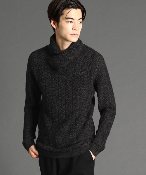 インパクトのある首周りが特徴のヘリンボン柄アフガンネックプルオーバー。ウール混のマシンウォッシャブル糸をハイゲージで編み立てているので滑らかな肌触りでチクチク感も無く暖かさと快適な着心地を与えてくれます。大人感のあるヘリンボン柄を2色の引き揃えで表現することでより高級感を与えてくれます。1枚で着ても、アウターのインナーとして着ても映える一着となっています。