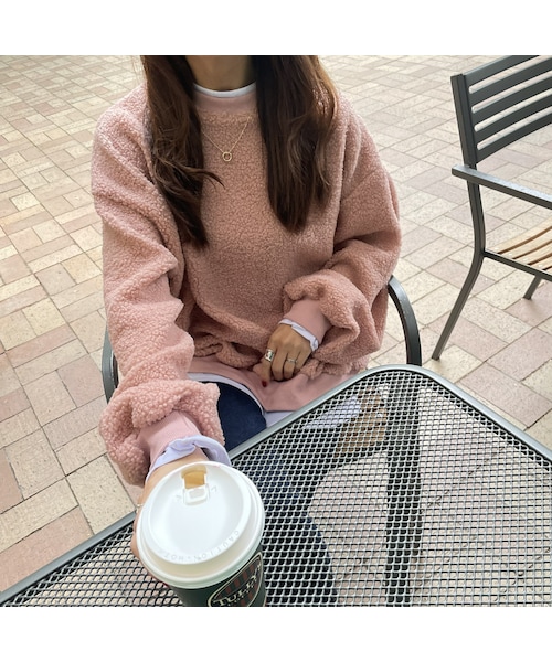 ふわふわもこもこで着心地の良いボアトレーナー。 インナーを着ているかのようなレイヤード風デザインで、簡単におしゃれに着こなせます♩ ボリュームあるトップスなのでスキニーパンツで合わせたり、ワイドパンツなどとのコーデでよりルーズな ゆるシルエット もおススメ◎ カラーも豊富で色違いで揃えたくなるアイテムです☆ ※モデル身長:161㎝ ◾️カラー ピンク ◾️サイズ 着丈(シャツ部分含む):68cm 身幅:65cm 肩幅:58cm 袖幅:25cm 裾幅:52cm ※多少の誤差は予めご了承ください。 ◾️素材 綿 70% ポリエステル 30% ※こちらの商品は海外縫製の為、多少歪み・縫製の甘さ(糸の出)などがある場合がございます。予めご了承下さい。