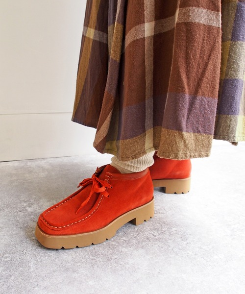 2021 - Winter - ≪スクエアトゥが今年らしい【軽量】厚底チロリアンシューズ≫ トレンドのアウトドア感が感じられるモカシン縫いが特徴的なチロリアンシューズ。 アルプス山脈・チロル地方の人々が放牧のために草原で履いていた伝統的な靴が原型です。 カントリーなスタイルを厚底とスクエアトゥデザインで今年らしい印象に。 自然的なベージュやレッドブラウンは綺麗な発色のスエード素材をチョイスし、ブラックはモード感も出せるスムース素材に。 履き心地のポイント 厚底ソールはEVA素材を使い、軽くて疲れにくく、歩きやすいです。 ゆったりスクエアトゥのモカ部分と、ヒモで調整できるデザインは、幅広・甲高さんにオススメできる一足です。 サッと足入れできるのもうれしいポイント。 コーデのワンポイント カントリーな風合いのチロリアンシューズには、それぞれのスタイルに合ったソックスコーデがぴったり。 靴下好きさんにオススメです。 ボーイッシュにカジュアルに合わせたい方は、デニムやつなぎスタイルに合わせて。 少しフェミニン感を出したい方はボリューム感のあるスカートを。 古着コーデにもぴったりな風合いある一足です。 【片足の重さ】約 ---g - あしながおじさん - ”まわりとは少し違う、オリジナルな魅力いっぱいのカジュアルシューズ” ローファーやストラップパンプスといったクラシカルなアイテムからスニーカーまで、幅広いラインナップが揃っています。 コロンとしたシルエットにほんのりスパイスをきかせた靴たちがあなたの足もとを素敵に演出します。 ■商品について 画像の商品はサンプルです。 実際の商品と仕様、加工、サイズ、素材が若干異なる場合がございます。予めご了承ください。 トップの画像は、光の具合で色味が違って見える場合があります。商品の色味は、スタジオ撮影の画像をご参照ください。 サイト上のカラー名と、お届け商品に記載されているカラー名が異なる場合がございます。 厳選された素材を使用しておりますが、雨に濡れたり、汗による湿気、乾燥状態での摩擦により革が色落ちし、薄い色の衣服、靴下などに色移りする可能性がございます。ご使用の際には十分ご注意くださいますようお願い致します。 ■返品について 商品の性質上、ご着用後のご返品については お受けすることができません。あらかじめご了承ください。修理依頼は、カスタマーサポートセンターお問い合わせ「ご注文に関するお問い合わせ」までご連絡ください ◆気になる商品は「お気に入り」登録を◆ ハートマークをクリックし、お好きなカラーを選んでお気に入りに登録すると入荷情報や残り1点の通知、完売カラーの再入荷、セール情報などを受け取ることができます。