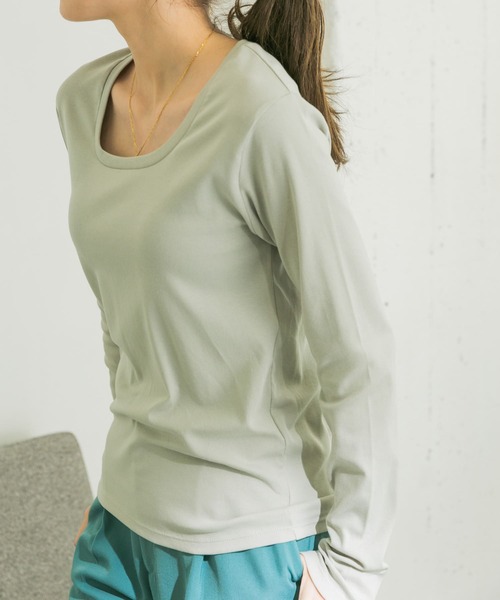 【様々なシーンで重宝する、女性らしい定番ロンTee】 きれいな表面感が特徴のシンプルなロンTee。落ち感のあるさらっとした、肌触りの優しい素材を使用しています。少しくたっとした抜け感のある雰囲気になるよう、袖丈は少し長めに、身頃はコンパクトながらも体に沿いすぎないサイズ設定にしました。襟は鎖骨が見えるくらいのUネックラインにすることで、ベーシックになりすぎずさりげないポイントに。 POINT ・デコルテのきれいに見えるUネックが女性らしさを演出 ・直接肌に触れたくなるような柔らかい素材感 ・ロングシーズン活躍の一枚 COORDINATE 一枚でももちろんご着用頂けますが、カーディガンやニットベストなど、秋冬のレイヤードスタイルにおすすめです。 ※この商品は、摩擦や汗、雨などの使用条件等により、色落ちや他の物への色移りの可能性がございますのでご注意ください。 ※直射日光や蛍光灯に長時間あたると変色したり、色褪せすることがありますのでご注意ください。 ※商品画像は、光の当たり具合やパソコンなどの閲覧環境により、実際の色味と異なって見える場合がございます。予めご了承ください。 ※商品の色味の目安は、商品単体の画像をご参照ください。 ----------------------------- 透け感 :ややあり(MINT GRAY)あり(OFF) 伸縮性 :あり 裏地 :なし 光沢 :なし ポケット :なし ----------------------------- ▼お気に入り登録のおすすめ▼ お気に入り登録商品は、マイページにて現在の価格情報や在庫状況の確認が可能です。 お買い物リストの管理に是非ご利用下さい。