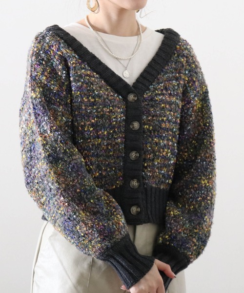 前後2WAYトップスに表情感のあるメランジヤーンが仲間入り! ほっこりとした暖かみのあるトップスです ■point ・前後2WAY仕様 ・ランダムな色合いのメランジ糸を使ったニット ・トレンド感のあるショート丈ニット ■detail 表面感、風合いを感じられるランダムな色合いのメランジ糸を使ったニット それだけでスタイリングが華やかになること間違いなし トレンド感あるショート丈なので、やぼったくならずに着こなせます ボタン前で着ると深いvネックのカーディガンになり、首回りもすっきりとした印象に…* ■coordinate 華やかな糸を使ったニットはシンプルなインナーを合わせて… ボトムはデニムからマーメイドスカートまで形を選ばずに合わせられます♪ 特にチャコールグレーはカラフルなメランジ糸なので、 ニットが主役になるようボトムはシンプルなベーシックカラーを選ぶのが◎ ■素材 素材:【表地】ポリエステル 100%【別布】ポリエステル 100%【裏地】ポリエステル 100% ********** 透け感…なし 裏地…なし 伸縮性…あり 光沢感…なし 生地の厚さ…普通 ********** ※撮影場所やお使いのモニター環境により若干お色味が異なる場合がございます。 ■商品のお気に入り登録■ ラスト1点の通知やセール通知、また完売していても再入荷時に再入荷通知を受け取ることができますので、是非ご登録ください♪ ■ブランドのお気に入り登録■ 新商品や再入荷など、お得な情報を受け取ることができます!ぜひご活用ください!