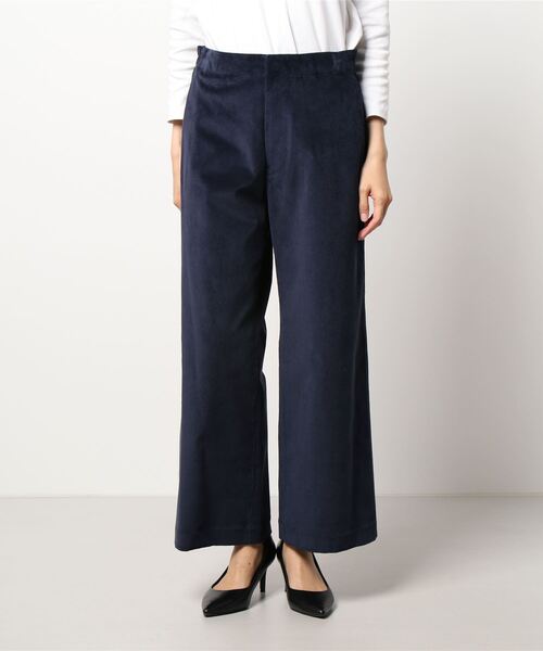 【ワイドストレートなコーデュロイパンツ】サイドのゴム仕様でリラックス感を持ち合わせながら、 腰回りはスッキリとしたデザイン。トップスと着合わせしやすい便利な中太シルエット。ポリウレタン混でストレッチ性があり、デイリーユースに手放せないアイテム。クラシックなコーデュロイも秋一番に取り入れたいおすすめ素材です。[モデル1]H158 B76 W64 H84.5モデル着用サイズ:1[モデル2]H165 B78 W59 H86モデル着用サイズ:1