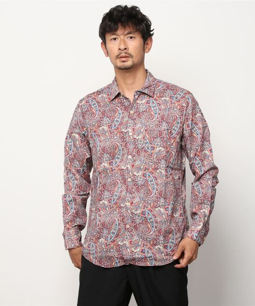 コットンテンセルのマルチカラーペイズリープリントのメンズシャツでテンセルのタラントしたドレープ感があります。バックアイレット付きヨーク、胸にR字型刺繍付きポケットレギュラーフィット。
