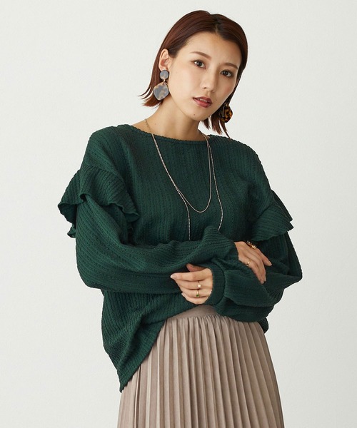 大人可愛いフリル袖 カットジャガードプルオーバー立体感ある織り柄の入った素材に、さりげない袖のフリルデザインがポイントのプルオーバー。さりげないフリル感で、大人可愛く着て頂けます。大人っぽくタイトスカートに合わせるのも◎マニッシュなパンツスタイルにも程よい甘さをプラスできてオススメ。-------------------------■透け感:なし■裏地:なし■伸縮性:あり■光沢感:なし■生地の厚さ:普通-------------------------☆★お買い物をお楽しみいただく為に★☆★商品のお気に入り登録完売カラーの再入荷通知や、ラスト1点の通知、セールの通知も受け取ることができます。★ブランドのお気に入り登録新商品や再入荷等、ブランドのお得な情報をいち早く受け取ることができます。