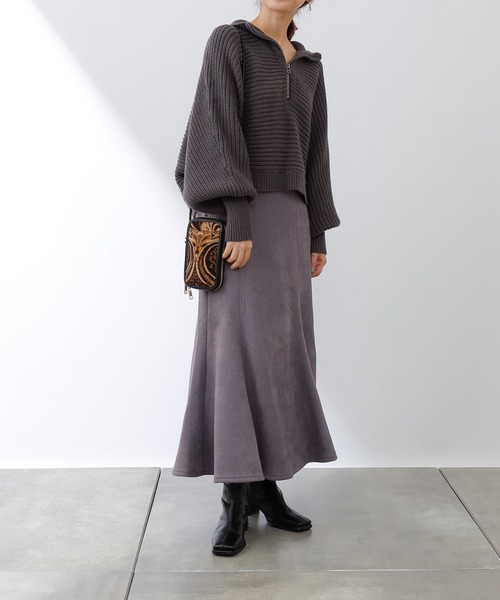 【シーズンムード高まるフェイクスエードマーメイドスカート】 柔らかな肌触りの、フェイクスエード素材を使用したマーメイドスカート。 長めの着丈で、歩くたびに揺れ動くフレアが女性らしいデザイン。 綺麗見えを叶えながら、ウエストはバックゴム仕様でイージーな穿き心地。 合わせるトップス次第で、幅広いシーンでご活躍頂けるアイテムです。 ・しなやかな肌触りのフェイクスエードで仕立てたスカート ・バックウエスト部分はゴムの作りで履きやすさも抜群 ・マーメイドラインで女性らしいメリハリのあるボディラインに 【コーディネート】 様々なトップスと合わせるだけでコーディネートが完成する、使い勝手の良い一枚。 カーディガンやシャツのコーディネートは女性らしく華やかに。 ニットやスウェットでカジュアルダウンにもぴったりです。 足元はスニーカーなどのフラットシューズはもちろん、ヒールやショートブーツなどで大人に仕上げても◎。 ■素材・洗濯について 本体: ポリエステル92%, ポリウレタン8% 洗濯:手洗い可 着用スタッフ 157cm ※着用、お取り扱いの際は、商品についている品質表示とアテンションタグを必ずご確認下さい。 ※商品タグに記載されている商品名がWEBでの表記名と異なる場合があります。 ※画像の商品はサンプルです。実際の商品と仕様、加工、サイズが若干異なる場合がございます。 ※照明の関係により、実際よりもやや明るく見える場合がございます。またパソコンなどの環境により、若干製品と画像のカラーが異なる場合もございます。予めご了承くださいませ。 【お気に入り登録】してお得な情報をCHECK!! ・「商品のお気に入り登録」で再入荷通知や、ラストの通知、セール通知も受け取ることができます。 ・「ブランドのお気に入り登録」で新商品や再入荷など、お得な情報を受け取ることができます。 __________________________________________________________