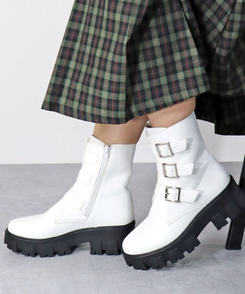 モードスタイルやコンバット系としても使えるトラックソールベルトブーツ♪ ベルトブーツの人気の特徴は 履いた時に足がすっきりときれいに見えるシルエット!! ファスナー付きで簡単に履けるお手軽さがありつつも 上品さ、大人っぽさも兼ね備えているのが人気の秘訣☆ [素材・カラー] ●アッパーには合成皮革を使用しており、質感がよく足に馴染みやすくなっております。 ●合わせやすいカラー展開で、様々なシーンで活躍します。 [形・特徴] ●つま先がシャープな木型にすることで、足元を華奢にキレイに見せおしゃれ感UP! ●ファスナーが付いているので着脱も簡単に行えます。 ●クッション性の高いインソールを全面に敷くことで快適な履き心地に♪ ●このアイテムのポイントでもあるトラックソール!美脚効果とシルエットのきれいさ、歩きやすさが魅力です♪ ●アウトソールには靴の返りの良さと滑りにくさの両方にこだわり、安定した歩行ができるように見た目だけではなく機能性も追求しました♪ ●全体的なデザイン性も高く、ソールのルックス、素材、パーツ選びやシルエットで上品で大人っぽい雰囲気に♪ 【商品のお気に入り登録】 商品のお気に入り登録をすると、 完売カラーやサイズの再入荷通知や、 ラスト1点のリマインド通知、 セール情報などをいち早くお届けします! 【ショップのお気に入り登録】 ショップをお気に入り登録すると 新商品の発売や再入荷、クーポン発行通知、 タイムセール情報など ショップのお得な情報をいち早くお届けします! ぜひ、ご登録ください!