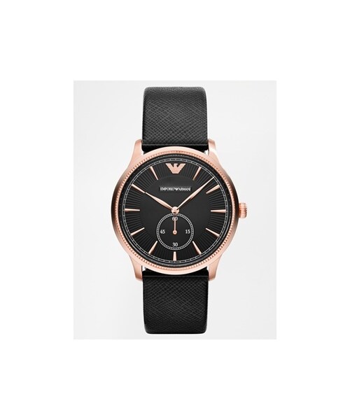 Watch by Emporio Armani Real Leather strap Textured slim bezel Sub-dial design Two hand movement Single crown to side Pin buckle fastening ABOUT EMPORIO ARMANI A diffusion line from iconic fashion house Armani, Emporio Armani offers timeless style with their collections of wearable classics. Emporio Armani pieces range from Loungewear and underwear to watches, all of which channel the effortless style Emporio Armani is famed for.ABOUT ME Model: AR1798 2 Year Manufacturer Warranty Case: Stainless Steel Case Width: 3.8cm Case Depth: 1.1cm Strap: Real Leather Fastening: Pin Buckle Movement: Quartz 3ATM: Water resistant to 30 meters (100 feet). Will withstand splashes of water or rain but should not be worn while swimming or diving. LOOK AFTER ME Wipe Clean With A Damp Cloth Product Code: 517732