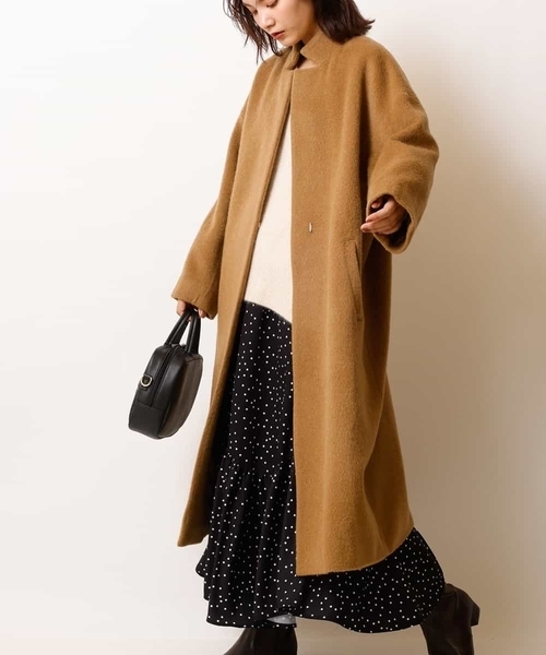 ◆【a.v.v Charme(アーヴェヴェ シャルム)】◆ こだわりの上質素材アイテムをお求めやすい価格で提供する “ハイクオリティーをリーズナブルに!”が コンセプト。 日常にリッチな気分をプラスして欲しい、 という願いを込めて立ち上げたa.v.vからのニューライン。 高品質な生地をつくるイタリア屈指の生地メーカー、 IN.TES.PRA社の生地を使用した スタンドカラーのシャギーコート。 温かみのある生地で、冬にぴったりな一枚です。 イタリア生地ならではの 美しい風合いとなめらかな手触りで、長く着用していただけます。 フェイスラインがきれいに見える襟のデザインと きれいなシルエットで、さらりと羽織るだけでニュアンス感のある 大人のカジュアルスタイルが決まるアイテムです。