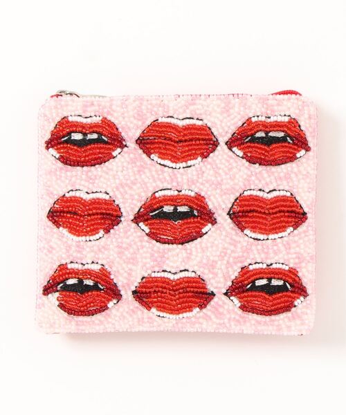 SHAJUKYのミニポーチ。表側のみにぎっしりビーズを敷き詰めた贅沢なデザインです。 裏側はシンプルな作りなので使いやすいです。 薄マチの小さいサイズなので、バッグの中でもかさばりにくく持ち運びに便利なデザインです。 ちょっとした小物類を入れることができる遊びこころのあるアイテムです。