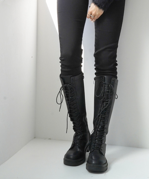 スタイルアップ効果!大人の女性にぴったりレースアップ仕様でトレンド感のあるロングブーツ!今年らしいボリュームのあるタンクソールのレースアップロングブーツ。フェイクレザーの上品な光沢感も魅力です。脚を自然にきれいに見せてくれて、スタイルアップ効果大◎【着こなし】ミニボトムやワンピースと合わせるとバランスが取れて相性抜群です。履くだけでトレンド感のある足元を演出します。★Instagramにて近日発売予定のアイテムやルックをご紹介しております。@vence_sharestyle★《お気に入り登録》でお得な情報がいっぱい★・「商品のお気に入り登録」で再入荷通知や、ラスト1点の通知、セール通知も受け取ることができます。・「ブランドのお気に入り登録」で新商品や再入荷など、お得な情報を受け取ることができます!※ご覧のモニター環境により、画像の色味と多少異なる場合がございます。※他のキャンペーンにより、期間中に価格が変動する場合があります。※セールは予告なく終了させていただく場合もあります。
