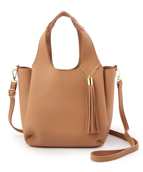 【デザイン】 メイン収納の前後に大容量のポケットを設えた3層構造のクリテトートバッグ。 シボの美しいフェイクレザーを用いて一枚革風に仕上げたアイテムです。 取り外しできるロングストラップで斜めがけでの使用も可能です。 揺れ動くタッセルチャーム付き。 ※ポケット数:あおりポケット×2 【カラー補足】 ピンク(072)はキャメルよりのピンクです。 店舗へのお問い合わせ商品番号:F97-03041 ●製品寸法: 00:高さ21cm 幅(上部)27cm 幅(下部)22cm マチ11cm 持ち手上がり15cm 付属ショルダー対応サイズ65~128cm 付属チャーム全長19cm モチーフH15cm モチーフW3cm 備考:重量:約510g