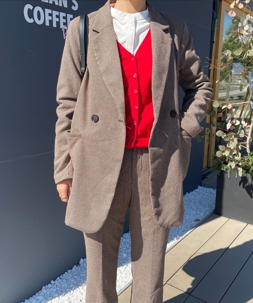 rectangleby ryon(レクタングルバイリョン) インフルエンサーryon×rectangleのコラボレーションアイテム。 【ディティール】 トラッドな雰囲気漂うテーラードジャケット。 一見シックな色合いながらも、細かなハウンドトゥース柄(千鳥格子模様)を使用し深みのある1着。 起毛がかった秋冬向けの素材なので、インナー次第で冬にも対応可能です。 秋は肩掛けでさらっと、冬はタートルネックやマフラーで暖かく、長い時期楽しんで頂けます。 ゆったりとしたサイジングに肩パッド、ダブルボタンなど、羽織るだけで様になる今年らしいアイテムです。 【コーディネート】 同素材のアイテムを合わせたセットアップコーディネートがおすすめです。 品番:532181 センタープレスフレアパンツ ********************** 透け感:なし 裏地:あり 伸縮性:なし 光沢感:なし 生地の厚さ:普通 ********************** 【rectangle by ryon】 「着ても、見ても、ワクワクする。」をコンセプトに、こだわりの詰まったオリジナルアイテムを展開。 rectangle×ryonが生み出す、シンプルなのにどこか新しい、ニューベーシックなアイテムをお届けします。 【りょん(@ryon_1224)】 WEAR、Instagramで発信するコーディネートがファッション感度の高い層から支持されている、 今注目のインフルエンサー。 カジュアルからモードまで、思わず真似をしたくなる着こなしを得意とする。 ※ご覧のモニター環境や撮影環境により実際の商品と多少色味が異なって見える場合がございます。 ご理解の程よろしくお願いいたします。 【お買い物をよりお楽しみいただく為に】 ▼商品のお気に入り登録をおすすめします ♡をクリックしてください。 完売カラーの再入荷や、ラスト1点の通知、 セールの際の通知を受ける事ができます。 ブランドのお気に入り登録もご一緒にお願い致します。