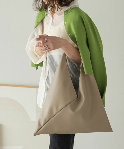 トレンドライクなトライアングル型トートバッグ 【ディティール】 ●マグネット式ボタンが付いているので収納時も安心です ●肩掛けしやすい長めハンドル ●ON/OFFで使いまわせるデザイン ●持ち手部分に合皮ハンドルを巻くことで肩、手への負担を軽減 ●大きく開くので使い勝手抜群!マグネット式ボタンが付いているので収納時も安心です。 【素材】 ホワイト×ブラック(カウ柄)は柔らかなツイル素材で表面感のある風合いが高見えします。 ブラック系その他(デニム)はホワイト分量を多くすることでカジュアルになりすぎず、きれいめにもお持ちいただけます。 ブラック、他カラーは、テカリの少ない高級感のある柔らかな合皮素材を厳選しました。 【サイズ感】 ・500mlペットボトル ・財布、スマホ ・化粧ポーチ など日常で使うアイテムは収納可能! 持ち手が長く開け閉めしやすいです。 オールシーズンマルチに活躍するバッグです。 ※ご覧のモニター環境や撮影環境により実際の商品と多少色味が異なって見える場合がございます。 ご理解の程よろしくお願いいたします。 【お買い物をよりお楽しみいただく為に】 ▼商品のお気に入り登録をおすすめします ♡をクリックしてください。 完売カラーの再入荷や、ラスト1点の通知、 セールの際の通知を受ける事ができます。 ブランドのお気に入り登録もご一緒にお願い致します。