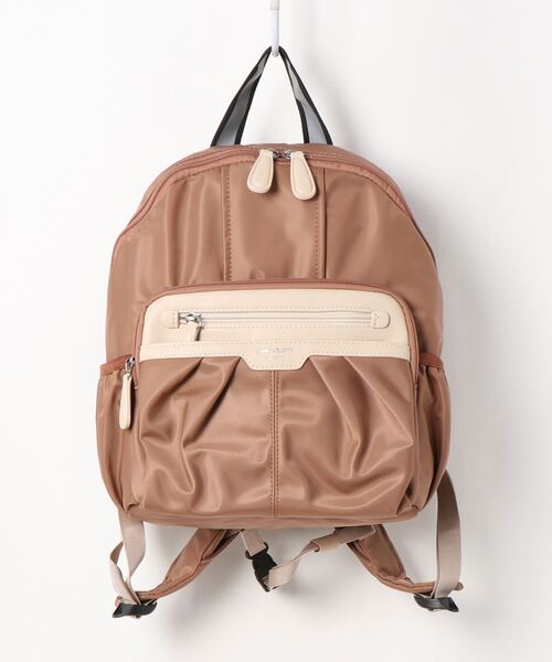 ◇& chouette(アンドシュエット)の丸型ソフトリュック 今まで以上に幅広い世代のお客様に向けて、とにかく機能面を盛り込んだリュックです。 ファスナーは全てバッグのカラーとあわせたコイルを使用しメッキの面積を減らしました。ご年配の方でも使いやすいよう、とにかく軽量に仕上がるようこだわりました。 フォルムは縦長ではなく正方形に近い比率でタッグをたくさん取り、まるいフォルムが可愛らしい印象に♡ ポケットもたくさんつけており、メッシュで見やすい内ポケットやゴムで口元がきつくなるポケットなど機能を充実させています。 また夜でも安心な反射テープを一部使用しています。 また肩が下がり気味でリュックを今まで懸念していた方でも安心なロックパーツ付きです♡ FREE:.(00):幅24cm/高さ33cm/マチ10cm/持ち手上がり8cm/ショルダー:最長82cm/ショルダー:最短50cm/重さ544g