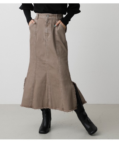 ・USED LIKEでありながらストレッチが入っている為、程よく伸びて穿きやすい素材です。 ・抗菌防臭を施した生地を使用しています。 ・しっかりとストレッチの効いたデニムを使用したマーメイドスカートです。 ・裾とサイドに施したフリンジとデザインとサイドスリットが女性らしさを演出。 ヒップ回りはややタイト目で裾にかけて広がる綺麗なマーメイドシルエットがスタイルアップ効果を演出します。 <コーディネート> ・レディライクなフリルニットとも相性抜群 ▼商品のお気に入り登録 お気に入りアイテムの値下げ・再入荷・在庫1点などの通知を受け取ることができます。 ▼ブランドのお気に入り 登録新商品や再入荷、セール、クーポン配布などお得な情報を受け取ることができます。