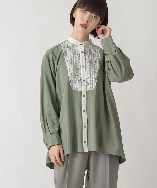 【La SRIC/ラスリック】モノポリーポプリン&オザワルツオクシージョエル胸元の絡み織メッシュストライプレース切り替えが特徴的なバンドカラーブラウス。ゆったりとしたシルエットにレーヨンの落ち感とモノフィラの光沢感がいい感じです。左袖の小さいカーゴポケットや、衿、前立てのブラックトリミングなどモードな印象のデザインブラウスです。サイズ(38) 着丈75㎝ 肩幅51㎝ 身幅58㎝ 裄丈78㎝【La SRIC】Japan Madeを中心に上質な素材と細部の仕様、縫製から感じられる着心地にこだわった完成度の高いパターン、少しエッジーなデザインを展開する東京ブランド。【INFORMATION 】▼お気に入り登録▼『♡』マークを押してお気に入り登録をすると、割引クーポンの発行/セール開催の通知/タイムセール通知/人気商品の再入荷通知など、miniyu取扱いブランドのお得な情報を受け取ることができます。 気になった商品はどんどん『♡』マークを押して、登録してくださいね♪