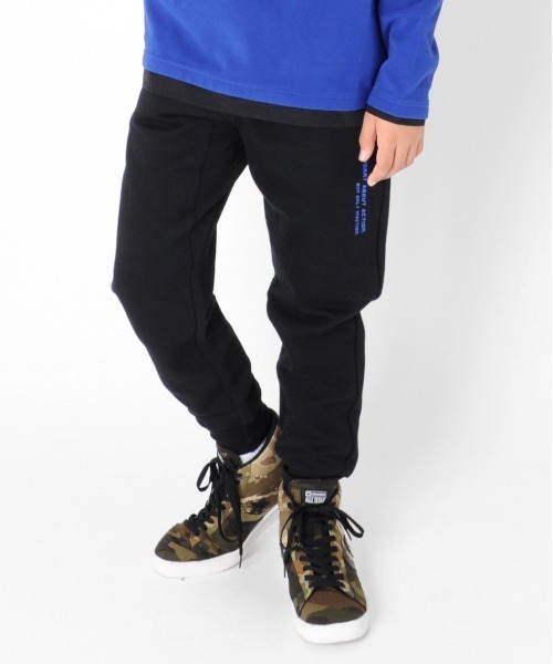 柔かくふんわりとした着心地が特徴の暖かいスウェットパンツ。カラーベルトとロゴプリントを配色にすることで、スポーティーな印象に◎股下マチ仕様で動きやすく、活発な男の子にオススメです♪裾に向かって細くなっていくテーパードシルエットは、くるぶし丈(9.5分丈)で重くなりすぎず程良い抜け感。裾リブ仕様で足元をキュッと締めスッキリと仕上げました。同素材のトレーナーと合わせたスポーティーなセットアップコーデがオススメ!トップスとパンツのプリントカラーを合わせたコーデは上級者っぽくて◎柔らかく暖かい素材でデイリー使いに便利なオススメアイテムです♪【ロゴ意味】never worry about action, but only inaction.:行動する事は少しも恐れはしない。恐れるのは、ただ無為に時を過ごす事だけだ。【ポケット】フロントポケット×2、ヒップポケット×1【モデル】身長148cm、体重34kg、着用サイズ:150cm【ご注意点】■この製品は素材の特性上、繊維の表面が着用中にこすられたり、もまれたりすると、毛羽の小さなもつれが絡み合い、ピリング(毛羽・毛玉)が生じる恐れがあります。これは、素材の特性上避けられない現象で、その発生を完全に防止することはできません。お取り扱いは丁寧にお願いします。■ピリングが発生した場合は、引っ張って取ろうとせず、エチケットブラシや毛玉り器などで取り除くか、一つ一つハサミで取り除いてください。■GLAZOSのお洋服は格好良いシルエットを目指し、一般的なお洋服より少し細身の作りにしております。実寸サイズをご確認の上、サイズをお選び下さいませ。