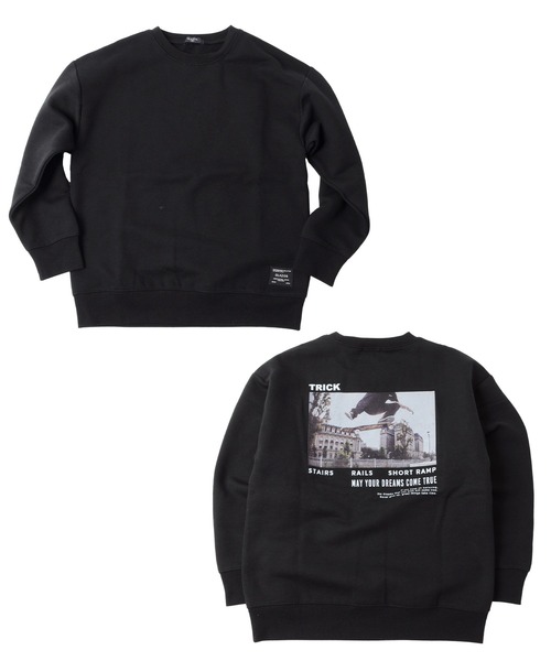 柔らかくあたたかな裏起毛の生地を採用しており、長い期間で着用頂けるトレーナーです。 コーディネートにアクセントを加える、インパクトのあるバックフォトプリントがポイント◎ 前身頃はすっきりと無地見えで、別の表情を楽しむことが出来ます。 ストリート感のあるスタイルは、トレンドでもあるので是非取り入れたい1枚! 肩を落としてラフに着られるゆったりめのサイジングで、旬なコーディネートを作り出してくれます。 デニムやツイルパンツなど、様々なボトムとも相性が良く、サラッと着るだけでも雰囲気のあるスタイリングが楽しめます♪ 【ロゴ意味】 TRICK:トリック(スケボーの技) STAIRS RAILS SHORT RAMP:スケボーのトリック名 MAY YOUR DREAMS COME TRUE:あなたの夢はきっと叶う 【モデル】 身長148cm、体重34kg、着用サイズ:150cm 【ご注意点】 ■この製品は素材の特性上、繊維の表面が着用中にこすられたり、もまれたりすると、毛羽の小さなもつれが絡み合い、ピリング(毛羽・毛玉)が生じる恐れがあります。 これは、素材の特性上避けられない現象で、その発生を完全に防止することはできません。お取り扱いは丁寧にお願いします。 ■ピリングが発生した場合は、引っ張って取ろうとせず、エチケットブラシや毛玉り器などで取り除くか、一つ一つハサミで取り除いてください。