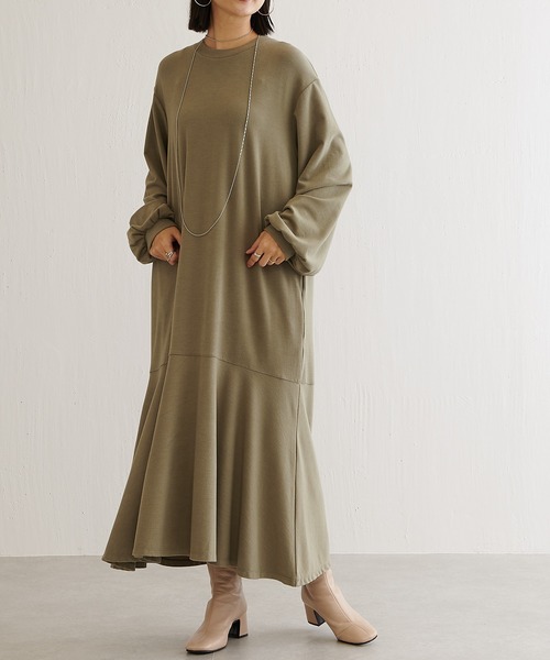 【2021AW】ワンランク上のスタイルが叶うシンプルワンピース◆デザイン◆・動く度に揺れるフレアな裾が上品さをプラス・シンプルな身頃にゆったりとしたボリュームスリーブがポイント・程よくゆとりがあり体型を拾いすぎないシルエット◆素材◆収縮性があり、落ち感のある肌触りの良い素材。程よい生地のアウターを羽織りやすいです。◆スタイリング◆シンプルなデザインなので小物が映えるワンピースです。インナーにタートルネックや襟付きのシャツをレイヤードしたり、ファーベストなどのアイテムをプラスするとまた違った印象が楽しめます。オンオフ問わずに着られるので、オケージョンシーンからデイリーシーンにと幅広く活躍します。◆品質表示◆洗濯:‐透け感:なし裏地:なし伸縮性:あり光沢感:なし◆商品画像について◆店頭及び屋外での撮影画像は、光の当たり具合で色味が違って見える場合がございます。また、お客様のお使いのモニター環境により、実物と色味が異なる場合がございます。あらかじめご了承下さいませ。◆お気に入り登録について◆▽気になるアイテムは、ハートマークをクリックしておくことで、スムーズにお買い物が楽しめます。・ラスト一点のお知らせ・再入荷のお知らせ・予約商品が店頭に入る際にお知らせ・SALEのご案内