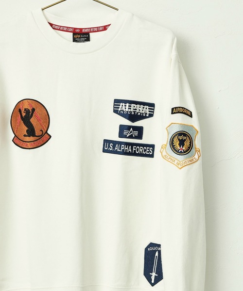 ビンテージMA-1ワッペンをスウェットに落とし込んだ一着直営店限定の人気カットソーが今年もバージョンアップして登場!こちらのスウェットは、ALPHA 50周年本に掲載されているビンテージMA-1をベースにパッチのデザインをアレンジ。ジャケットやブルゾンのインナーとしてだけでなく、アウターを着ないシーズンに一枚着でもコーデのアクセントになります。**************************************【商品のお気に入り登録】♡→♥クリックして保存するのがおすすめ①完売カラーの再入荷通知やラスト2点の通知②期間限定セールやプライスダウンの通知③悩んでいるときにも♡登録で一覧検索可能【ブランドのお気に入り登録】♡クリック新作入荷や再入荷など、ブランドの情報をいち早くお知らせします!ぜひ活用してショッピングをお楽しみください♪**************************************
