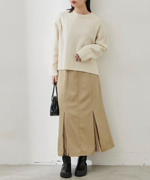 ベーシックデザインで着回し力抜群の定番ニットPOINT・ゆとりのあるレイヤードもしやすいシルエット・冬のコーディネートのポイントになるカラー展開・チクチク感が少なく着心地のよさが〇STYLINGゆったりとしたシルエットながらもどんなボトムスとも相性がよくバランスの良い丈感がポイントの1枚ゆとりのあるサイズ感でシャツやハイネックのカットソー、Tシャツなどとのレイヤードスタイルもおすすめ。ニットの厚みが程よく、アウターの中に着込んでも着ぶくれしにくいのも嬉しいポイント。単色ではなく、ミックス糸を使用しているため派手なカラーにならず落ち着いた雰囲気でスタイリングしていただけます。------------------------透け感/なし光沢感/なし伸縮性/あり裏 地/なし厚 み/厚手------------------------※自宅洗濯可(手洗い)詳しいお手入れ方法は商品タグをご参照ください。★同素材シリーズAMGFA1121006 金ボタンドルマンカラーカーディガンAMGFA1121007 ショルダータックカラーニット【商品のお気に入り登録】完売カラーの再入荷通知やラスト1点の通知プライスダウンの通知も受け取ることができます。ぜひご登録ください◎【ブランドのお気に入り登録】新商品や再入荷など、ブランドの情報をいち早くお知らせします!ぜひご登録ください◎※ご注意※・屋外の光や照明の当たり具合で、実際の商品の色味とカラー別画像の色味に若干の違いが発生する場合がございます。・詳細画像と併せてご確認の上、ご注文いただきますようお願い致します。