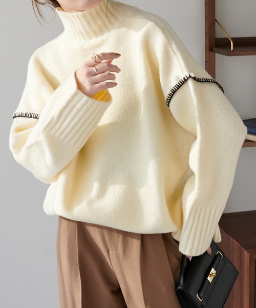 ステッチデザインがアクセントになるビッグプルオーバー。 気分に合わせて表情の変化を楽しめる、前後2WAY仕様のニットプルオーバー。 ゆったりとしたシルエットに、ハイネックデザインがこなれ感を演出。 ショルダーや、センターラインにあしらったステッチがアクセントを効かせます。 腰回りが隠れる長めの着丈で、ボトムス選ばず幅広いアイテムとも好相性◎ ベーシックカラーに加え、冬のスタイルに映えるピスタチオをご用意致しました♪ *********************** 洗濯方法:手洗い 裏地:なし 透け感:なし 伸縮性:あり 光沢感:なし 生地の厚さ:厚い *********************** ※ご覧のモニター環境や撮影環境により実際の商品と多少色味が異なって見える場合がございます。 【お気に入り登録がオススメ!】 ●商品のお気に入り登録 「在庫残りわずか」の通知や、「完売カラーの再入荷」、「セール」の通知を受けることができます。 ●ブランドのお気に入り登録 新商品や再入荷等、ブランドのお得な情報を受け取る事が出来ます。