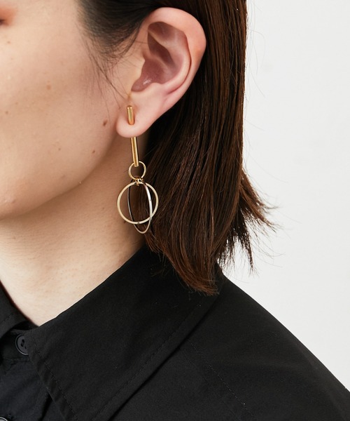 片耳で主張するバイカラーフープピアス キャッチにデザイン性のある、新しいスタイルの個性派片耳ピアス。 揺れるリングパーツがキャッチになっていて、それが重みで下がり後ろからパーツが見えるデザイン。大小二つのリングがきらめき、顔回りを彩ります。 《ポイント》 ・両耳をアシンメトリーに仕上げるスタイリングが今っぽい。 ・モードなスタイリングをブラッシュアップしてくれるメタルデザイン。 ※片耳販売のピアスとなります。 《お気に入り登録》でお得な情報がいっぱい! ・「商品のお気に入り登録」で入荷情報や、ラストの通知、セール・クーポンの通知などを受け取ることができます! ・「ブランドのお気に入り登録」で新商品や再入荷など、お得な情報を受け取ることができます!