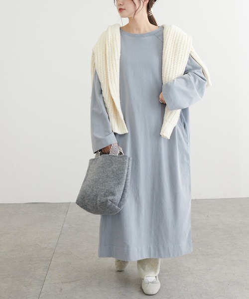 ピュアルセシン 2021 autumn&winter collection【sophisticated retro】 ◇小物合わせで自分らしさを演出できるカットワンピース◇ ●デザイン ラグランスリーブがカジュアルな印象のカットワンピース。 体が泳ぐワイドシルエットでありながらストンと落ちたシルエットで、見た目以上にスッキリと着こなせます。 パウダー加工を施しているため、着古したようなヴィンテージ感が楽しめます。 両サイドにはポケットが付いているので、ちょっとしたお出掛けにもぴったりです。 ●カラー展開 淡いベージュ/ブルー/グレーの3色と ブラックの全4色展開。 ●素材 しっかりとした生地感ながらも柔軟性があるコットン素材です。 ●スタイリング 一枚でワンピースとしてはもちろん、リブパンツを合わせたレイヤードスタイルもおすすめ◎ アウターはデニムジャケットやニットカーディガンなど どんなアイテムとも相性抜群です。 =============================== 透け感:なし 裏地:なし 伸縮性:ややあり 光沢感:なし 生地の厚さ:普通 【スタッフコメント】 年齢:20代前半/身長:152cm/普段着用サイズ:Mサイズ サイズ感:体が泳ぐワイドなシルエットでラフな着心地。152cmでくるぶし上程の丈感だったので、1枚でも着れました。 素材感:ドライタッチでロングシーズン活躍しそうです。 =============================== ※撮影場所やお使いのモニター環境により若干お色味が異なる場合がございます。特にロケの撮影では明るく見える傾向にございます。 ※予約商品はサンプルで撮影をしております。若干の仕様が変更になる場合がございますので予めご了承の上ご注文くださいますようお願いいたします 。