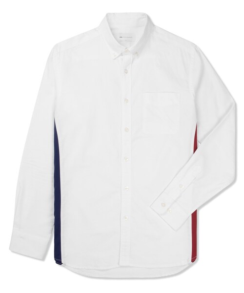 A popular Korean clothing retailer turned menswear label, LIFUL began designing and producing their own clothing line with the experience and resources accumulated in fashion throughout the years. 100% cotton oxford cloth button-down shirt with contrasting panels and front button closure. Available now in white.