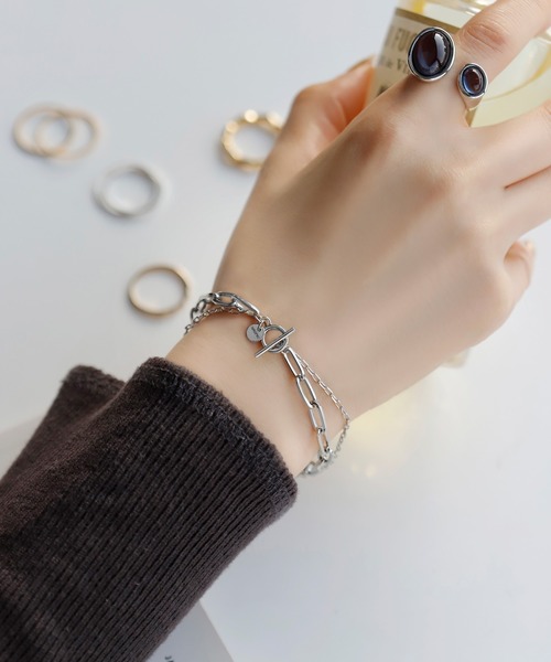 ダブルチェーンデザインが、手元に洗練された印象を与えるブレスレット。程よいボリュームでコーディネートに合わせやすく、デイリーに活躍します。※ATTENTION※■微細なキズや製造ムラはすべての商品に含まれます。