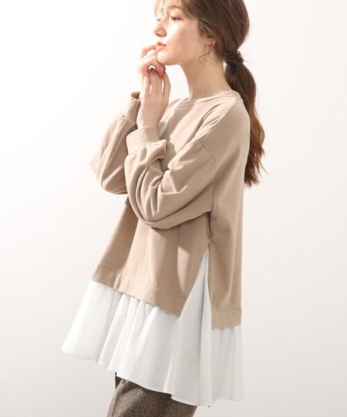 【デザイン】トップスの裾からシャツをのぞかせるレイヤード風のカットソーです。ドッキングしたシャツ部分はボリューム感を出して、大人可愛い雰囲気で着て頂けます。【生地感】トップスは起毛感のある暖かみのあるカットソー素材を使用しています。【スタッフ着用コメント】触り心地がとっても気持ち良いです^ ^ストレッチが入ったカットソー素材なので、着やすさもバッチリですよ!シャツのレイヤード風なところもトレンド感がプラスされますね!安心感のある着丈なのも嬉しいポイント。ワイドやプリーツ、テーパード、スキニーなどパンツとの相性が◎モデル情報:身長163cm B81 W56 H82 着用サイズ:02(M)店舗へのお問い合わせ商品番号:741-13346●製品寸法:02(M):着丈70cm B106cm 袖丈45cm 肩幅56cm03(L):着丈72cm B110cm 袖丈46cm 肩幅57cm04(LL):着丈73cm B114cm 袖丈47cm 肩幅58cm備考:
