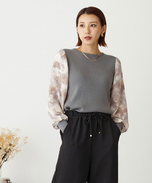 重ね着風が、これ1枚で完成するニットトップスボカシ柄ブラウスに、ニットベスト合わせ風のオシャレが叶う。レイヤード風なので、スッキリ目見えし、防寒着の下にも着やすいシルエットに仕上げているのがポイント。スカート・パンツにも合わせやすい丈で、デイリーに活躍してくれます。-------------------------■透け感:なし■裏地:なし■伸縮性:あり(身頃のみ)■光沢感:なし■生地の厚さ:普通-------------------------☆★お買い物をお楽しみいただく為に★☆★商品のお気に入り登録完売カラーの再入荷通知や、ラスト1点の通知、セールの通知も受け取ることができます。★ブランドのお気に入り登録新商品や再入荷等、ブランドのお得な情報をいち早く受け取ることができます。