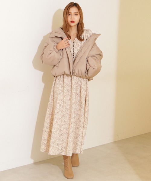 ふっくらしたフォルム感のある中綿ショートブルゾン。袖はボリュームがあり、中にニットなどを着こむことができます。裾のドローコードでフォルム調節ができるショート丈のデザインで、ミニ丈スカートやパンツ、ワンピースともバランス良く合わせられます。一番上までジップとスナップボタンを留めると首元が立ち上がり、暖かみがありますが、前を開けてもサマになます。※こちらの商品はSサイズの展開がございます。◆サイズ目安◆Sサイズ→身長153cm~156cm ウエスト60cm~62cm