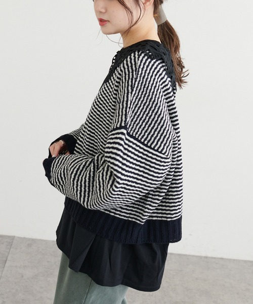 ピュアルセシン 2021 autumn&winter collection【sophisticated retro】◇ジャガード編みが映えるニットカーディガン◇●デザイン1枚で映えるジャガードデザインが目を惹くニットカーディガン。ドロップショルダーや緩くラウンドしたネックライン、ゆとりを持たせた身幅でイージーな着心地です。前後着用可能なのでメイン着としてもカーディガンとしてもお召しいただけるので着回しが利き、幅広いスタイリングが叶います。●カラー展開ネイビー×アイボリー/ブラック×アイボリーの2色展開●素材アクリルとウールの混合素材。程よい立体感のジャガード編みは、コーディネートのポイント使いにも◎●スタイリングウエスト丈なので、スッキリしたボトムからワイドなボトムまで様々なスタイリングに取り入れていただけます。1枚でさらっと着用するのは勿論、カットソーやブラウスとのレイヤードスタイルもオススメ。首元に余裕があるのでタートルネックのインナーと合わせると、グッとシーズンライクなルックスが完成します。===============================透け感:なし裏地:あり伸縮性:なし光沢感:なし生地の厚さ:普通【スタッフコメント】年齢:20代前半/身長:157cm/普段着用サイズ:Mサイズサイズ感:しっかり身幅を取っているので、窮屈感なくお召しいただけます。素材感:ウール混なので暖かく、これからのシーズンにぴったりの素材感です。適度な立体感があるジャガード編みは1枚で映えるスタイリングに。===============================※撮影場所やお使いのモニター環境により若干お色味が異なる場合がございます。特にロケの撮影では明るく見える傾向にございます。※予約商品はサンプルで撮影をしております。若干の仕様が変更になる場合がございますので予めご了承の上ご注文くださいますようお願いいたします 。