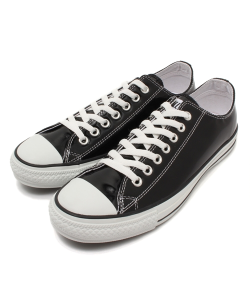 パーティーシーンのシューズや小物に使用されるエナメルレザーを落とし込んだオールスター。上品で光沢のあるレザーを最大限に楽しめるアイテム。カジュアルからトラッドまで、幅広く足元に似合う。履き込んでいくことで、自分だけの形・表情に変わっていく魅力もあります。ハイカットとローカットで展開中。