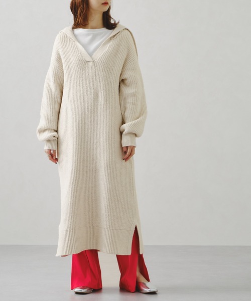 トレンドのセーラーカラーがポイントのニットワンピースは、ナチュラルなカラー展開で大人カジュアルに着られるアイテム。スキッパーデザインで首元に抜け感があるので、ロンTやタートルネックを合わせてもお洒落な着こなしに。 裾に施したスリットからレイヤードしたパンツやスカートをちらっと見せるのも◎。 ★《お気に入り登録》でお得な情報をGET★ ・「商品のお気に入り登録」で再入荷通知やラスト1の通知、セールやクーポンの通知も受け取ることができます!→ハートマークをクリック ・「ブランドのお気に入り登録」で新商品や再入荷など、お得な情報を受け取ることができます!