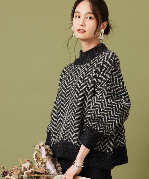 2021AW シーズンムードを盛り上げてくれるヘリンボーンニット 【デザイン】 クラシカルな印象のヘリンボーン柄ニット。カラフルなカラーネップがアクセントをプラスしてくれます。顔周りをすっきり見せてくれるモックネックは華奢見せ効果も◎。ボリュームスリーブが大人フェミニンを叶えてくれます。トレンドのクロップド丈でボリュームのあるボトムと高相性。ロングスカートはもちろん、キレイめパンツを合わせた大人マニッシュな着こなしもおすすめです。 【素材】 柔らかい肌触りとふんわりとした風合いが魅力。大人可愛い雰囲気に仕上げるフェザーヤーン素材です。 ---------------------- 透け感:なし 生地の厚さ:厚手 伸縮性:あり洗濯:手洗い可 ---------------------- 【FONT LAB】 トレンドに敏感なアメリカ・ロサンゼルス発のブランド。きれいめテイストの中に遊び心のあるエッジを効かせたカジュアルデザインアイテムが特徴。LAで暮らす世界中を旅することが大好きな女性をイメージしたワードロープを展開。 ※画像の商品はサンプルです。実際の商品と仕様,加工,サイズが若干異なる場合がございます。 ※撮影時の照明の関係により,実際よりもやや明るく見える場合がございます。お色味に関しましてはご詳細画像にてご確認ください。またパソコンなどの環境により,製品と画像のカラーが若干異なる場合もございます。予めご了承ください。