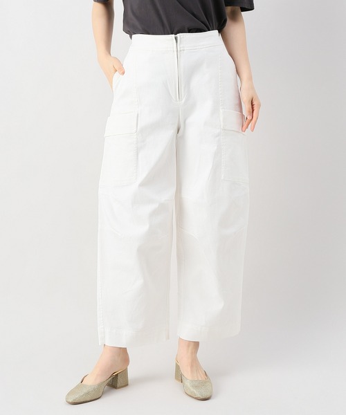 旬らしいワイドデニムパンツ。ポケットの位置や大きさなどワークらしさを残しながら、旬らしいシルエットに仕上げたデニムパンツ。カジュアルなコーディネイトにピッタリな1枚です。【MUVEILWORK/ミューベルワーク】日常の装いに、小年っぽさを思い起こさせる女性に、ベーシック感のあるリアルクローズを提案。 MUVEILのコーディネートのひとつとして提案してきたデニムやチノを主役とした新ライン「MUVEIL WORK(ミュベール ワーク)」が、2013年デビュー。 日常的なカルチャーとリンクして愛用していただけるように、リアルシーズンに合わせたコーディネートを中心に発信しているブランド。