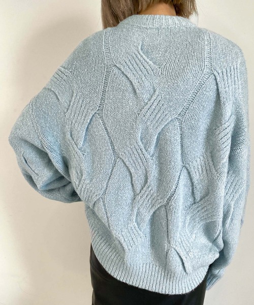 2021 AW 秋冬アイテム トレンドアイテム 【立体感のある大きなケーブル編みが印象的なニットトップス】 フワフワのニットが抜け感と小慣れ感を演出。 ▼Design ・首元のクルーネックデザインがスッキリとした印象を。 ・ケーブル編みがフェミニンな女性らしさを。 ・コーデのアクセントとなるキレイめなカラー展開 ・スタイリング映えする豊富なカラーバリーエーション。 ▼Fabric ・フワフワモチモチな生地感は肌触り抜群。 ・伸縮性も高いので、ゆったりとした着心地です。 ▼Styling ・キレイめボトムと合わせれば大人カワイイ印象に◎ ・アウター合わせでも、チラッと除くBIGケーブルのデザインがコーデのアクセントに。 ・デニムパンツや、スラックスと合わせてカジュアルチックにも◎ ・淡い色でのカラー展開なので合わせ次第では可愛いくも、カジュアルにも。 ・どのアイテムに合わせやすいので、コーデの幅が広がるアイテムとなっております。 ----------------------------------------- 【以下アイボリー参考。カラーにより多少の誤差あり】 ・透け感:やや透ける ・伸縮性:あり ・生地の厚さ:普通 ・裏地:なし ----------------------------------------- 【スタッフ着用コメント】 身長159cm 実際に着てみると肌触りがとてもよく、フワフワな生地の肌触りは抜群です。 ゆったりとしたサイズ感なので、ゆるっとした着こなしが好きな方にはオススメの アイテムとなっています。単品でも充分に可愛いですがアウターや、様々なボトム と合わせても可愛いくなること間違いなしです。コーディネートが楽しくなること間違いなしの アイテムとなっています。