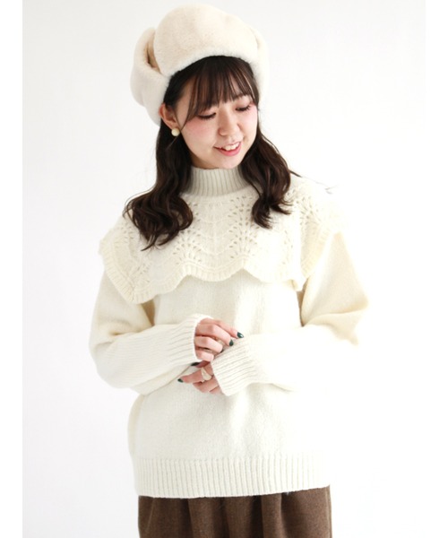 首元を包み込むような繊細な透かし編み衿がドレッシーでクラシカルなニット。衿は取り外し可能で、外すとシンプルな大人上品ニットにスイッチします。程よいショートな丈感でボトムスとの相性も抜群。柔らかい肌ざわりと程よいサイズ感でノンストレスな着心地も味わえます。自宅でケア可。