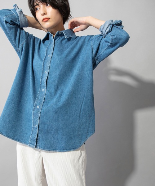 □2022 PRE SPRING COLLECTION□ ◆大人気の8ozデニムシャツに程よく女性らしいデザインが仲間入り!◆ <MATERIAL> ナチュラルな表情の10/-x 20/-を甘めに織った8ozデニムで、度詰めに織ると1ozくらい重くなるので糸番手からするとかなり軽くて柔らかなデニムでふくらみもあります。 坂本デニムのエコ染色システムで染められており、洗浄薬品や温水を使わないことで素材、環境への負荷が従来の染色方法から格段に軽減されています。 <DESIGN> 度甘織りで軽く・柔らかなふくらみのあるスラブデニムのバックスタイルが女性らしいデニムシャツです。 後ろ身頃にフレア分量を加えた、共地テープを結ぶことで出来る自然なタックがデザインポイントのデザインです。 ヒモは取り外し可能で、ヒモの結び方次第でシルエットが調整できて、いろいろな着こなしが楽しめます。 しっかり結んでもタイトにならず、立体的なタックがカジュアルすぎず、大人っぽく着れるアイテムになっています。 やや厚みのある肉感のデニムなので羽織としても使いやすく、ざっくりしたニットを上にレイヤードしたり、コーディネート次第で長い期間着ることができます。 <COLOR> ■インディゴブルー:ストーンバイオ+ブリーチで見た目にもライトに加工し、さらにくたっとした風合いを出しました。 *光のあたり具合いやパソコンなどのモニター環境によって実際の色味と異なって見える場合がございます。予めご了承ください。 ※インディゴデニムについて※ インディゴ染料を使用した素材を使用しています。 染色の特性上、新しいうちは特に色落ちしやすく、他のものと擦れ合うと色移りします。 新しいうちは白や淡い色の服・バッグ・ベルト・椅子など身の回りの品への色移りにご注意下さい。 その他、お取扱い上の注意をよくご確認の上、ご使用をお願いします。 *お取扱いについては、商品についております品質表示にてご確認ください。 洗濯:洗濯機使用可 .............................≪INFORMATION ≫............................ ▼商品のお気に入り登録▼ 『♡』マークを押してお気に入り登録して頂いた商品は、セール開催の通知やクーポン発行などのキャンペーンなど、お得な情報をいち早く受けとる事が出来ますので、ぜひご登録ください。